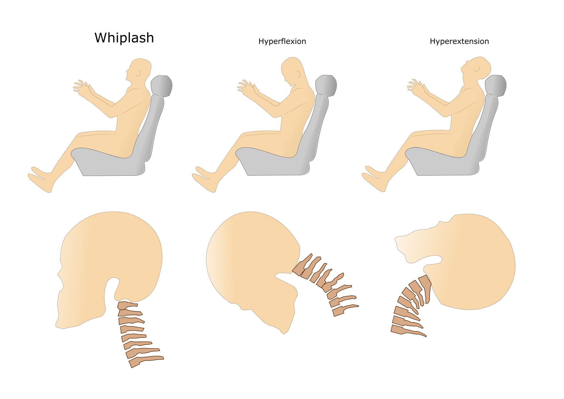 - Always using seatbelts and drive motor vehicles with airbags. Proper adjustment of the car seat headrest can also help keep the neck from snapping backwards.